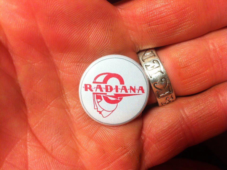 Yet again, a very cool Radiana button for your lapel, this time it's white with pink artwork. Get all 3 for ultimate variety!